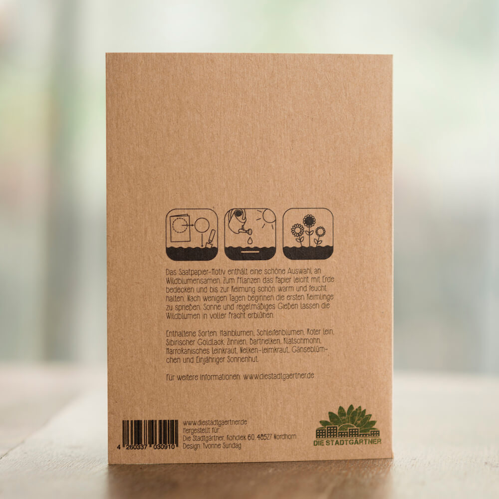 Das Design vom Saatstecker ist auch auf die Karte gedruckt, das Gesamtmotiv bleibt also erhalten.