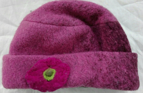 Schlichter Hut von Anra aus Rothenburg aus 80% Wolle/ 20% Baumwolle mit Filzblume. Größe 3 passt für einen Kopfumfang von ca. 55-58 cm.