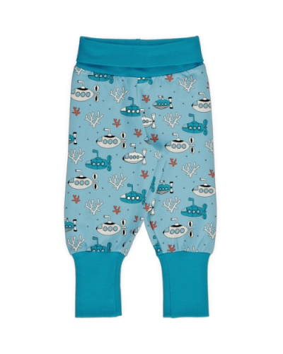 Pumphose mit lustigem U-Boot Motiv aus 95% Baumwolle kbA/5% Elasthan mit weichen, farblich abgesetzen Mitwachs-Bündchen. Gots zertifiziert. Hergstellt in Indien.