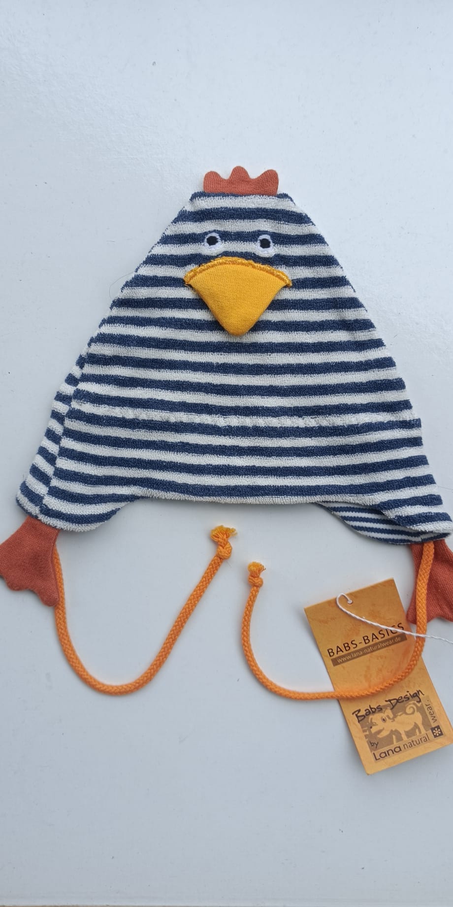 Ganzjahresmütze Huhn Erna gestreift sehr süße und praktische Ganzjahresmütze aus 100% Baumwolle kbA von Lana.