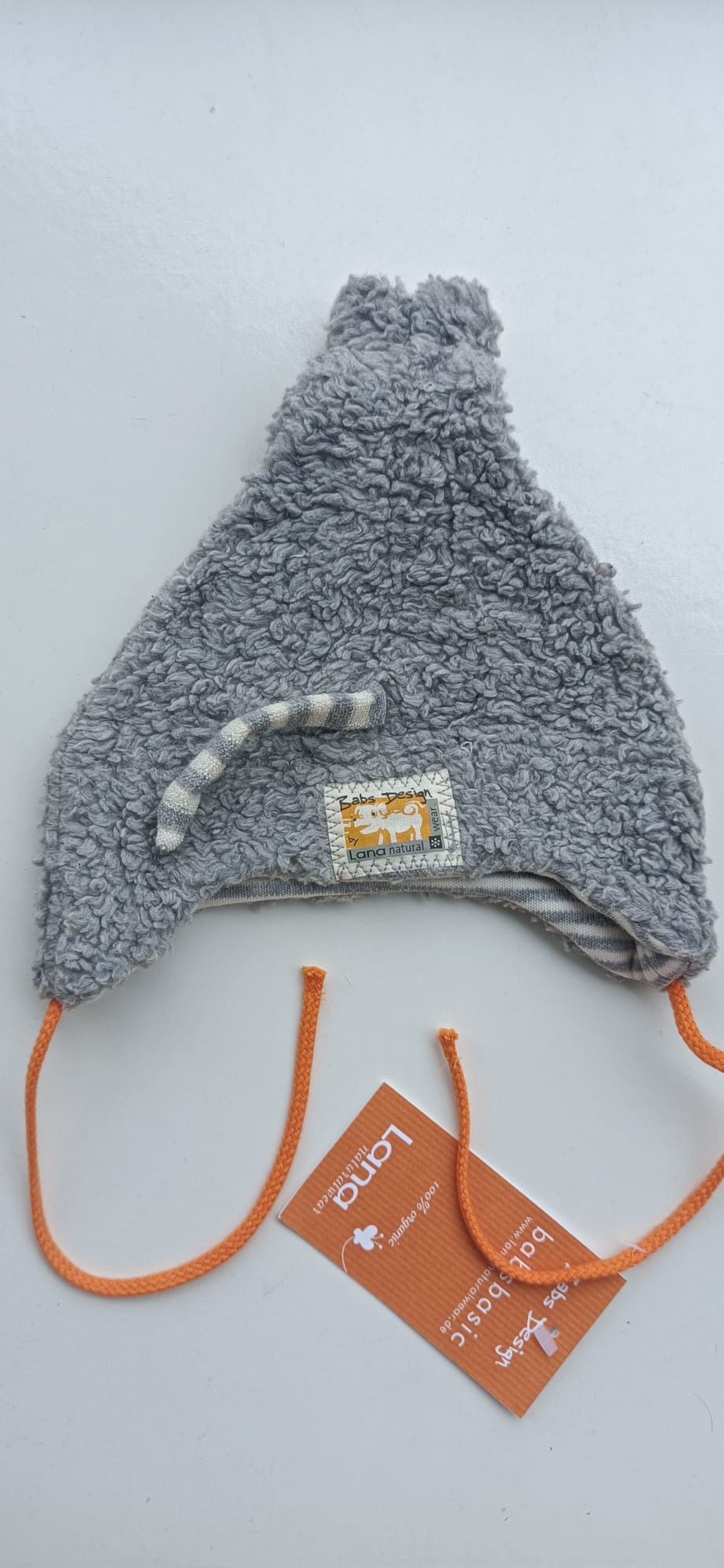 Mütze Maus Paul von Lana aus 100% Baumwollplüsch mit süßem Ringelschwänzchen und kleiner Perle als Näschen.