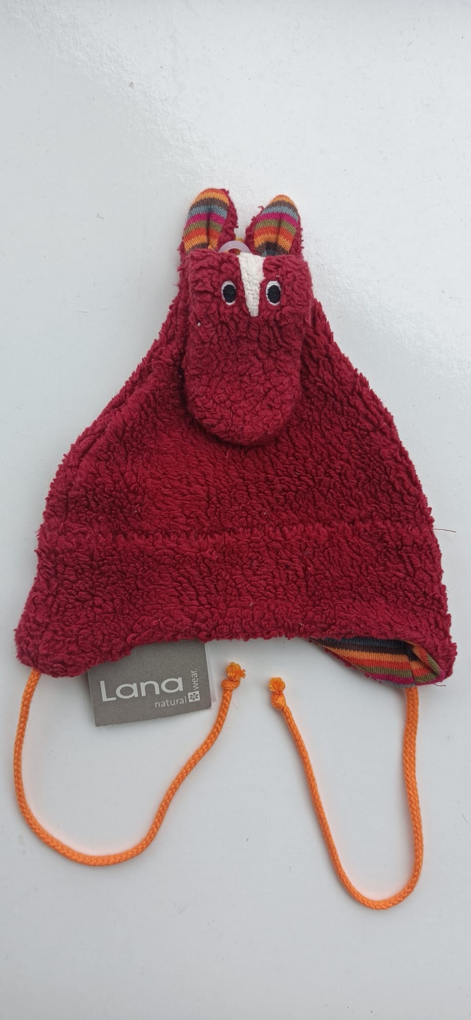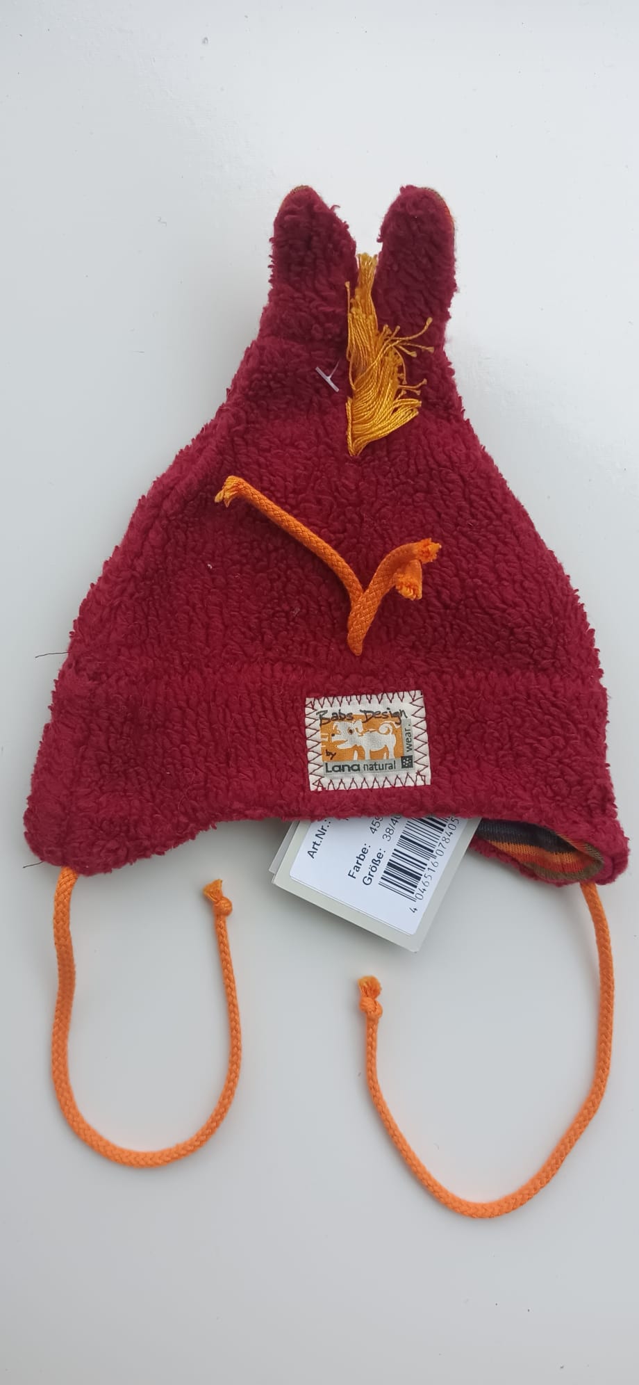 Süsse Mütze mit schönen Details von Lana. Alle Größen mit Bindeband.