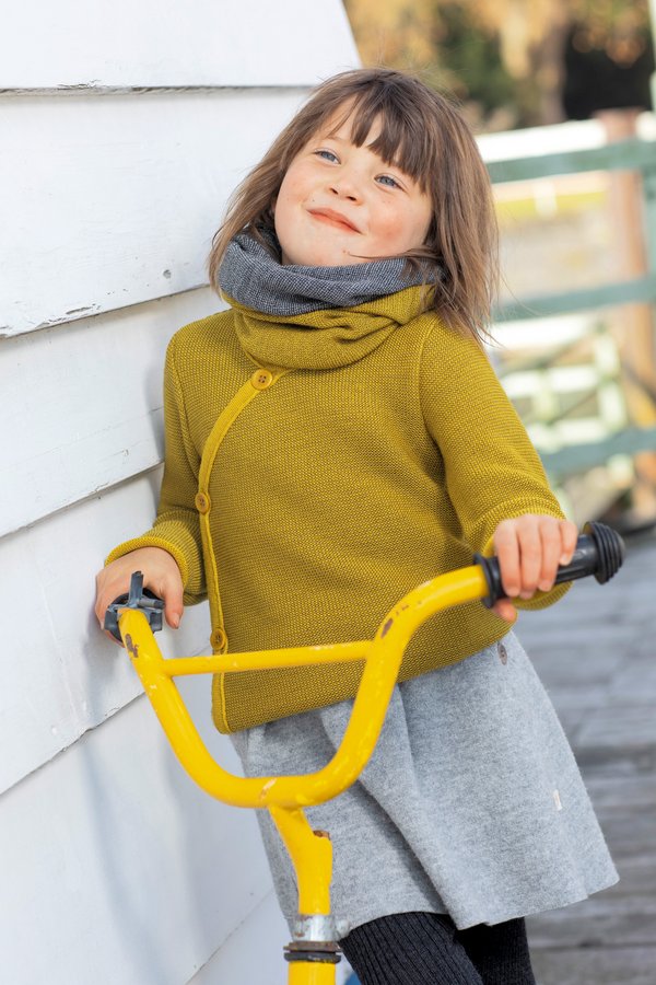 Sehr schöne und weiche Melange Jacke aus 100% Merino-Schurwolle für die Kleinsten. Ideal für Wickelkinder, da die Jacke durch den Wickelverschluss auf der Vorderseite optimal am liegenden Kind anzuziehen ist. Durch den schönen Links Strick ist die Jacke sehr elastisch und macht die Bewegungen des Kindes gut mit.Steinnussknöpfe.