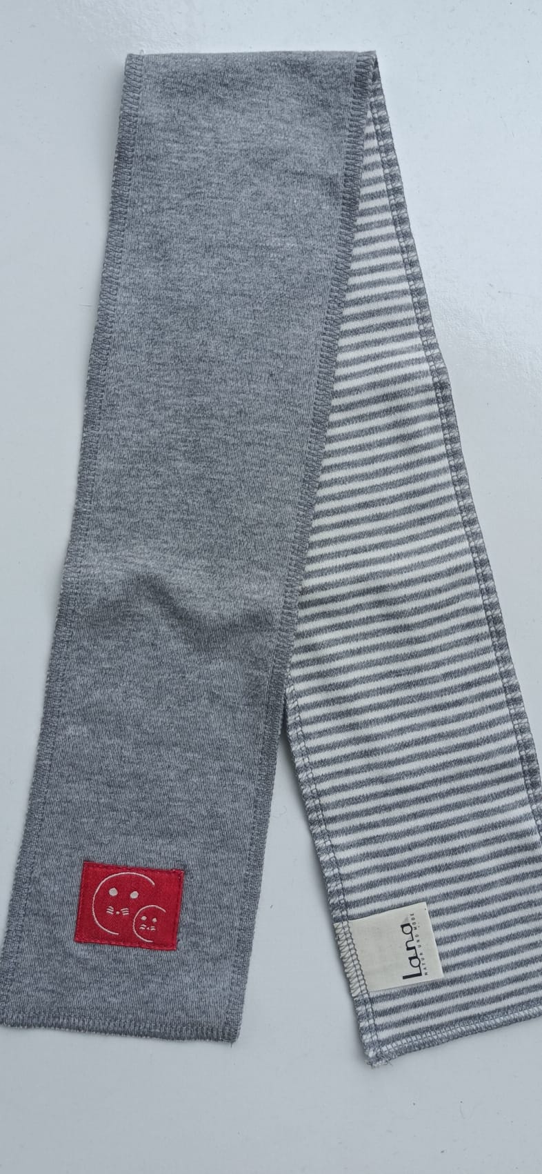 Weicher Schal aus 100% Baumwolle kbA von Lana. Eine Seite uni , die andere geringelt.
