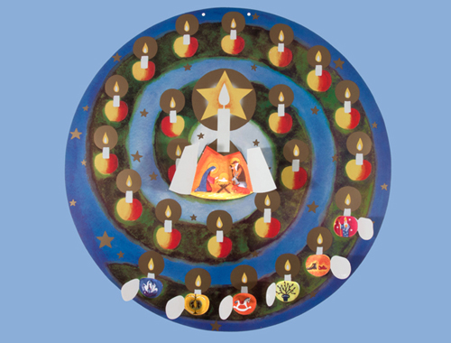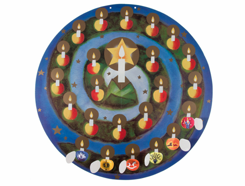 Hinter jedem Apfel wartet eine eine neue Überraschung. Der Kalender aus Karton kann ans Fenster oder die Wand aufgehängt werden.